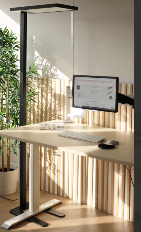 Son socle robuste en tôle épaisse de 8 mm, associé à un pied en forme de U, assure une excellente stabilité et permet un positionnement optimal autour d’un bureau. Fabriqué en aluminium peint époxy, son design minimaliste et ses lignes élégantes lui permettent de s’intégrer dans tous les styles d’intérieur, du plus classique au plus contemporain.